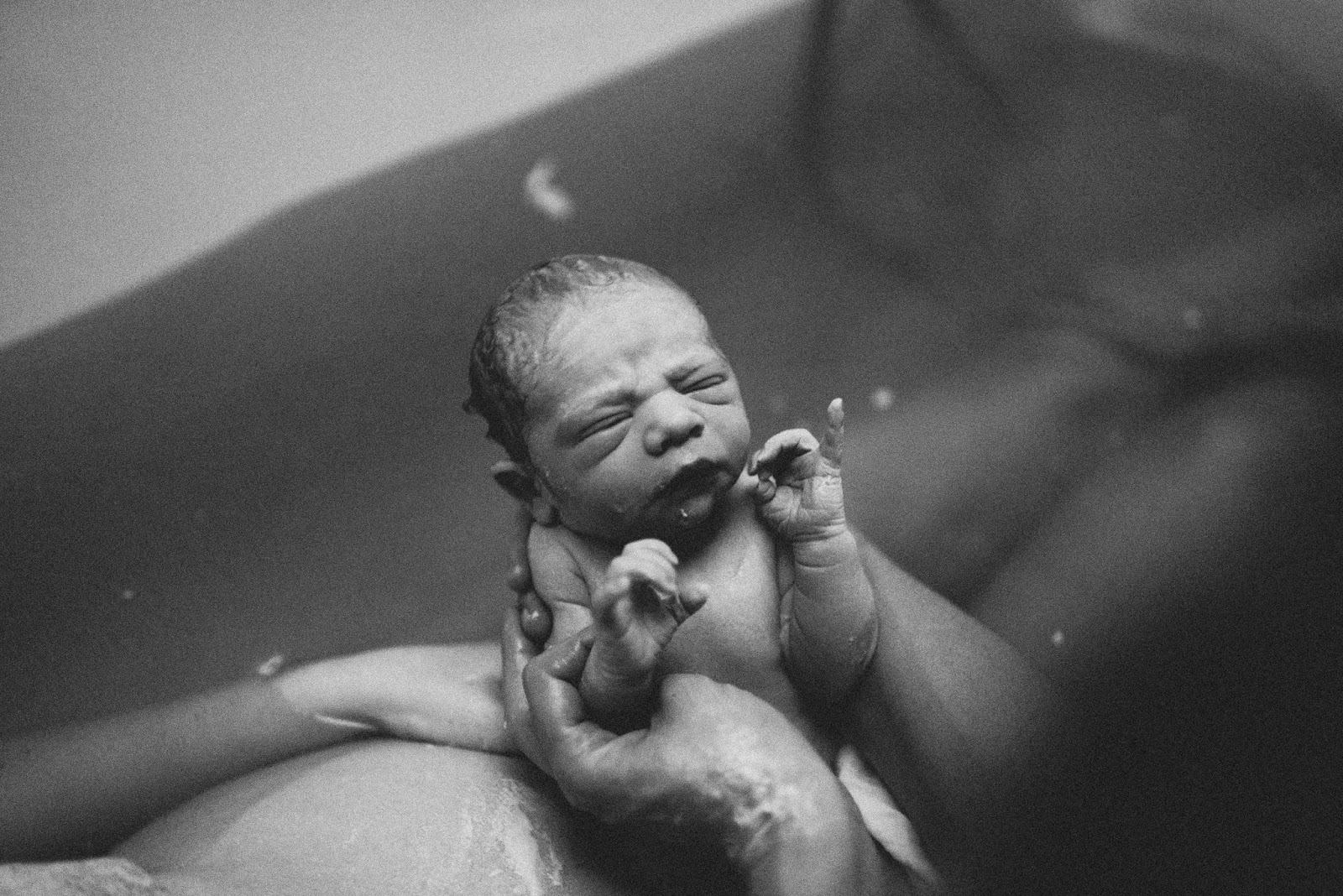 Elke perswee die laatste 2 uren zijn een afwisseling tussen angst van de pijn en scheuren en moed om te bevalling af te maken. De vroedvrouwen willen dat ik uit bad kom om te gaan plassen. Ik zit ondertussen al bijna 2u in het bad maar ik luister niet… ik heb geen idee hoe ik ooit nog uit dat bad moet geraken van de pijn & dus blijf ik koppig zitten en negeer elke vraag. Op aanraden van de vroedvrouwen besluit ik wel om op mijn knieen te gaan zitten in het water en voel dan na enkele persweeen je hoofdje.